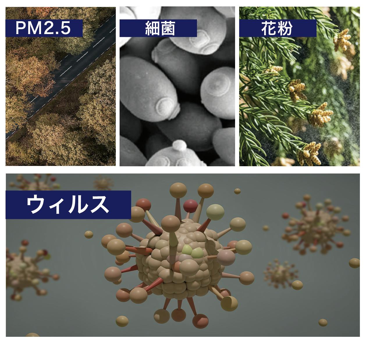 (揮発性有機化合物)などの分子や細菌、ウイルス、悪臭のもとなどを