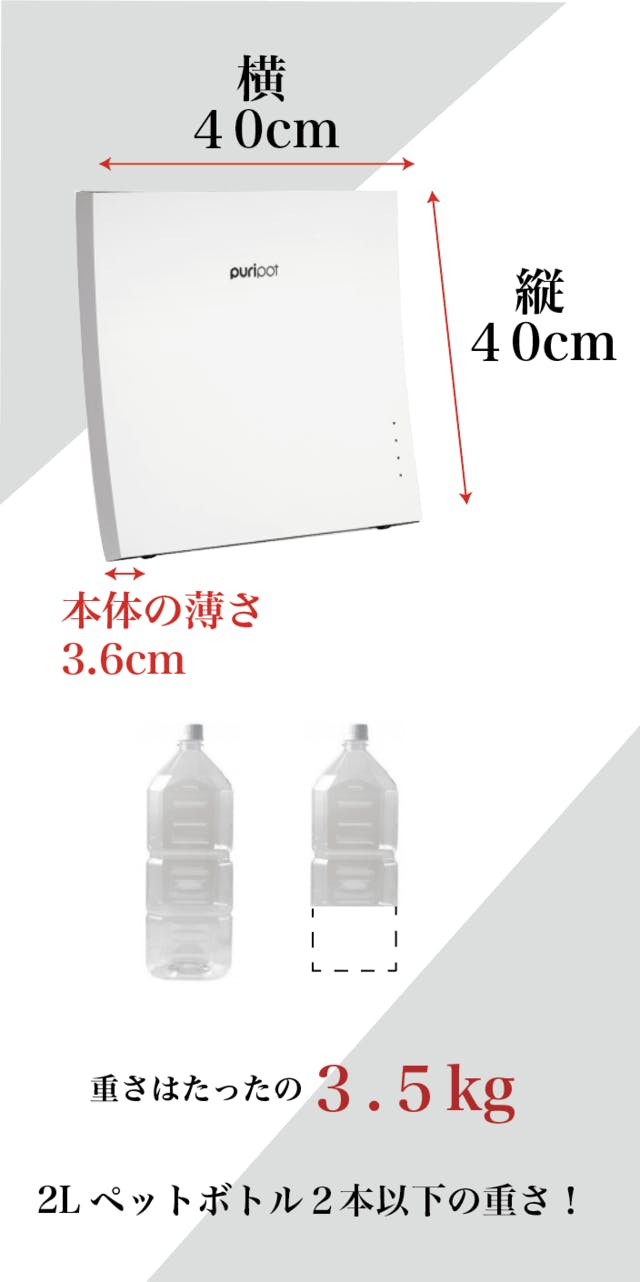 Puripot F1+の本体の薄さは3.6cm。重さはたったの3.5kgと女性でもラクラク持つ事
