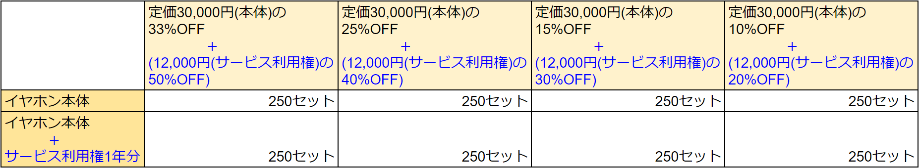 今回開発するインテリジェンスイヤフォンと健康管理サービスをご利用いただける様に、イヤフォン本体と健康管理サービス利用権1年分をリターンとして設定させていただきました。