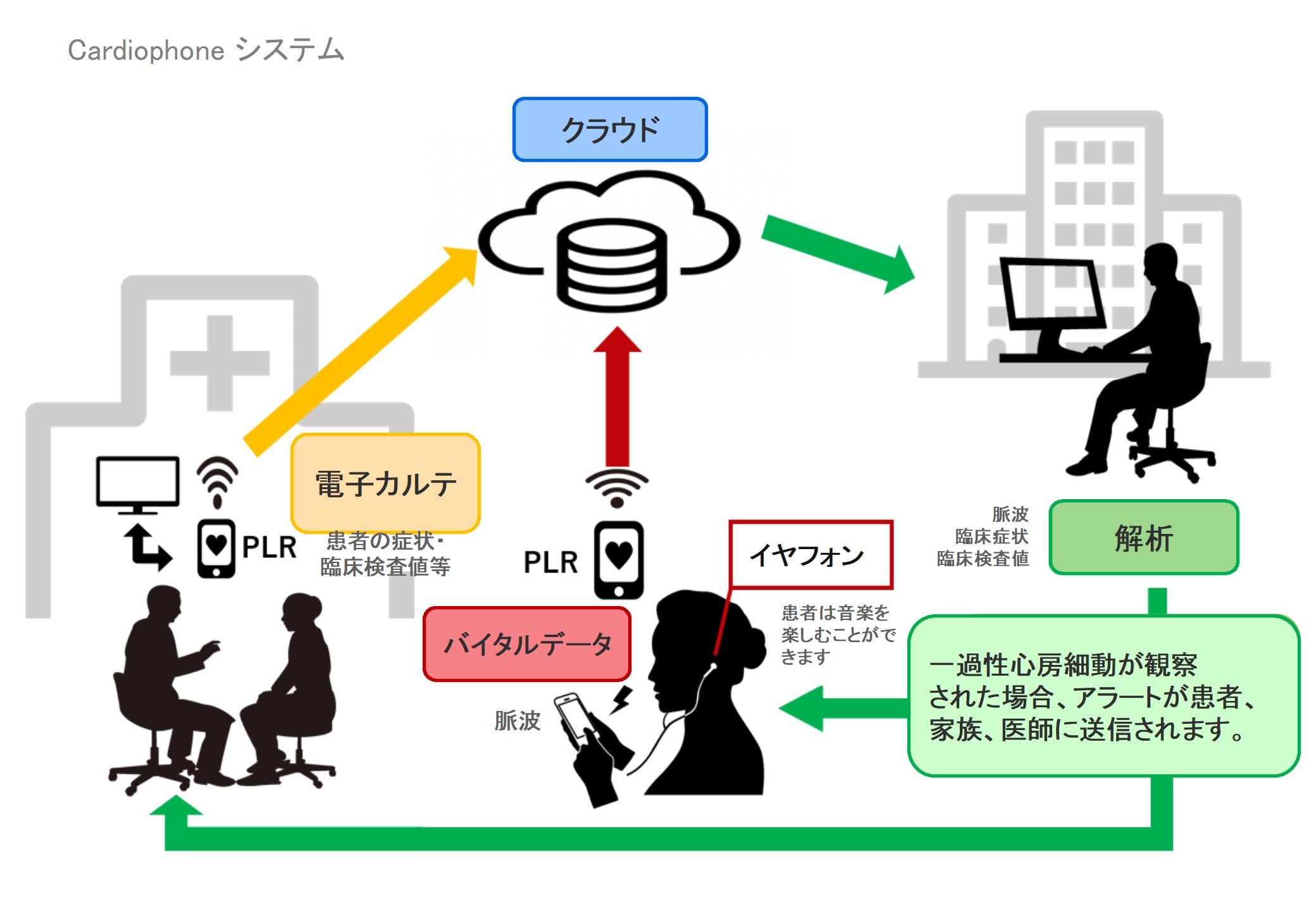 また、この仕組みづくりにあたって、今までの生活様式を変えることなく、普段皆さまが聴かれている音楽を楽しみながらバイタルデータ(生体情報。具体的には耳温や脈波、酸素飽和度など。)を取得できるANC(Active Noise Cancelling)機能を搭載した高音質なワイヤレスのインテリジェンスイヤフォンの開発、及び、イヤフォンとデータベースを連携し、ご利用になられる方に各種情報(生体情報や予見される症状など)を提供するスマートフォンアプリケーションの開発をいたします。