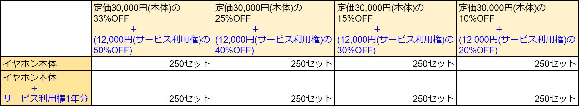 今回開発するインテリジェンスイヤフォンと健康管理サービスをご利用いただける様に、イヤフォン本体と健康管理サービス利用権1年分をリターンとして設定させていただきました。