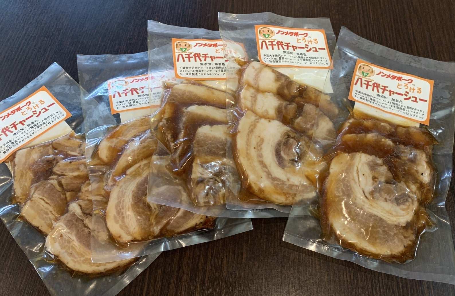 当店の「もちぶた炙りチャーシューバージョンとん汁」には、ノンメタポークを加工したチャーシューを使用していますが、その際、「地元八千代市の地域活性化に貢献したい!」という想いで、「八千代チャーシュー」と名付け、持ち帰り用の販売を開始しました。