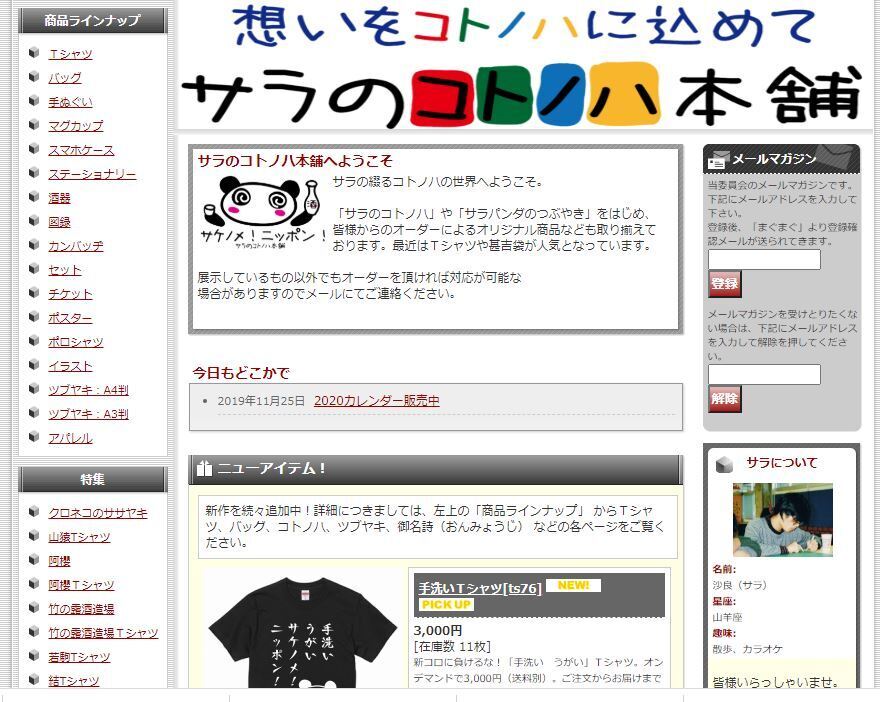 「サラのコトノハ本舗」と申しますのは、ワタクシが描くパンダや、その仲間の
