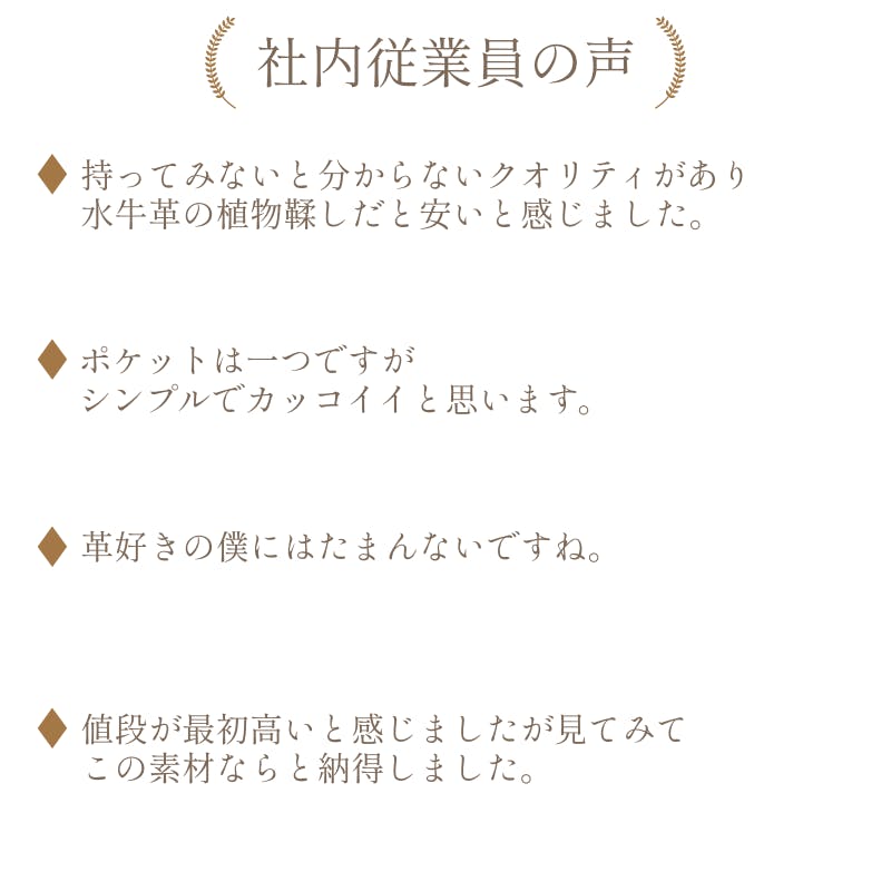 何と言ってもオイルを多く含む水牛だから為せるこの肌触りです。