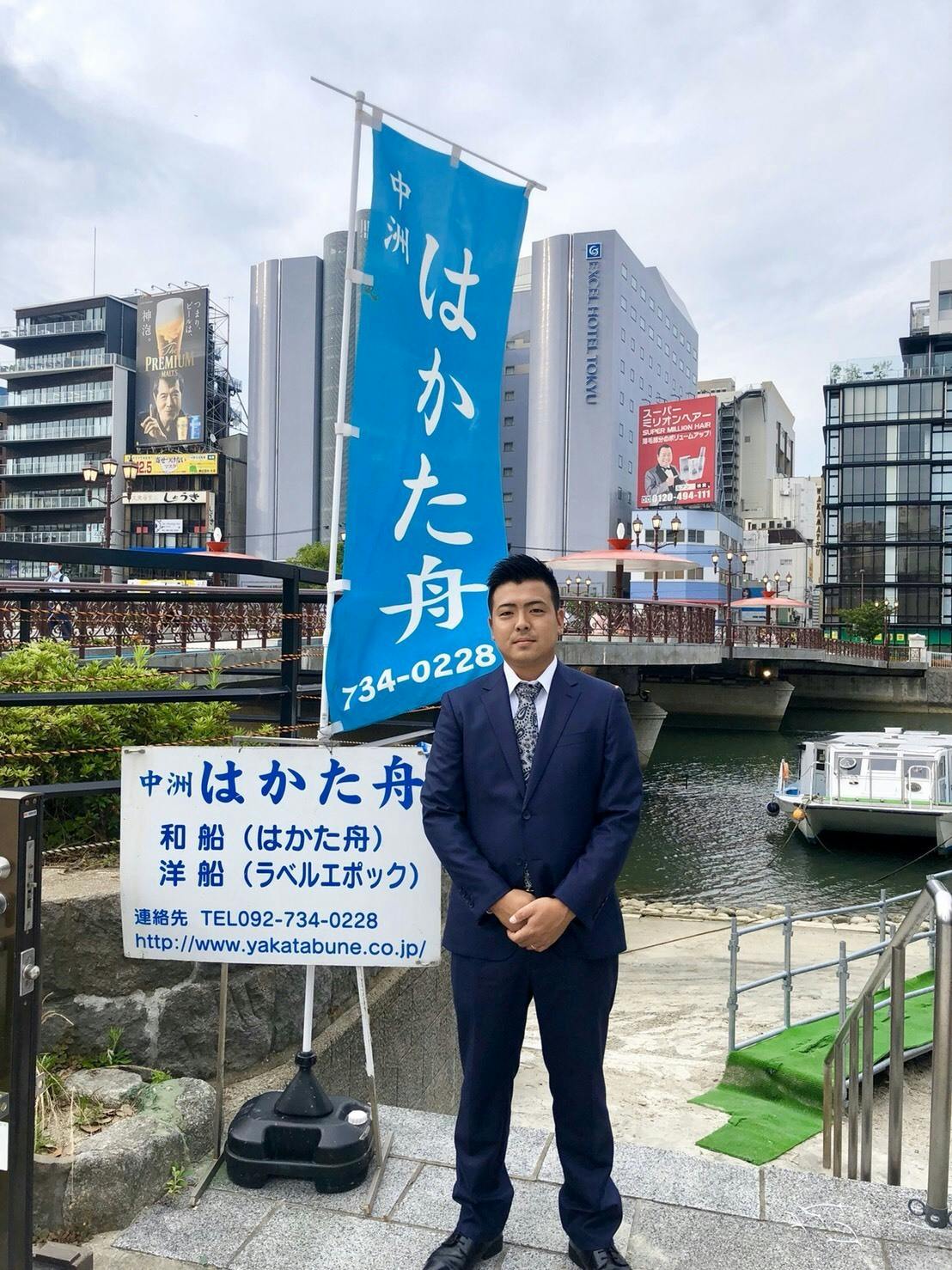 博多中洲の那珂川にて屋形船をしております、 中洲はかた舟の岩永教功と申します。