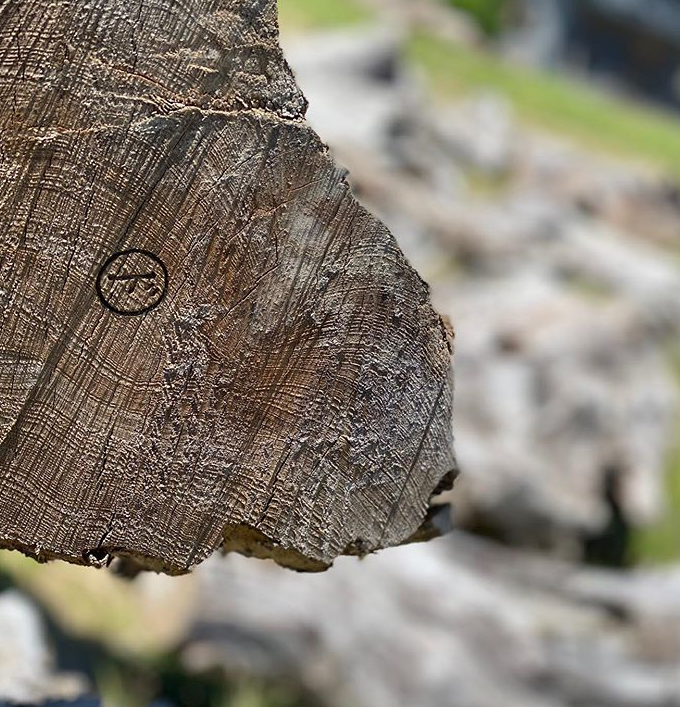 屋久島森林管理署経由の正真正銘の屋久杉には「〇ド」というマークが刻印されています。