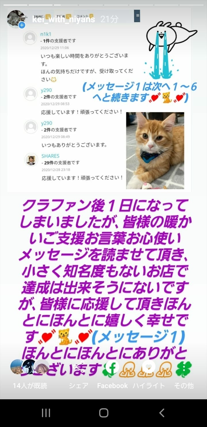 ラスト1日になってしまいましたが皆様の暖かいお言葉お心使いメッセージご支援で頑張れてます。