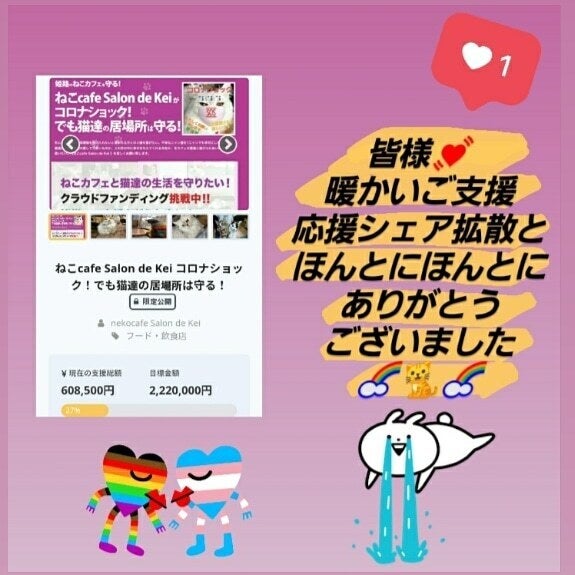 【608,500円】もの、沢山の暖かいご支援が集まり、有難く嬉しく感謝の気持ちでいっぱいです。(^人^)。