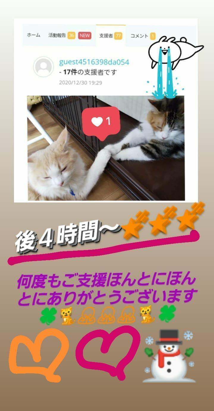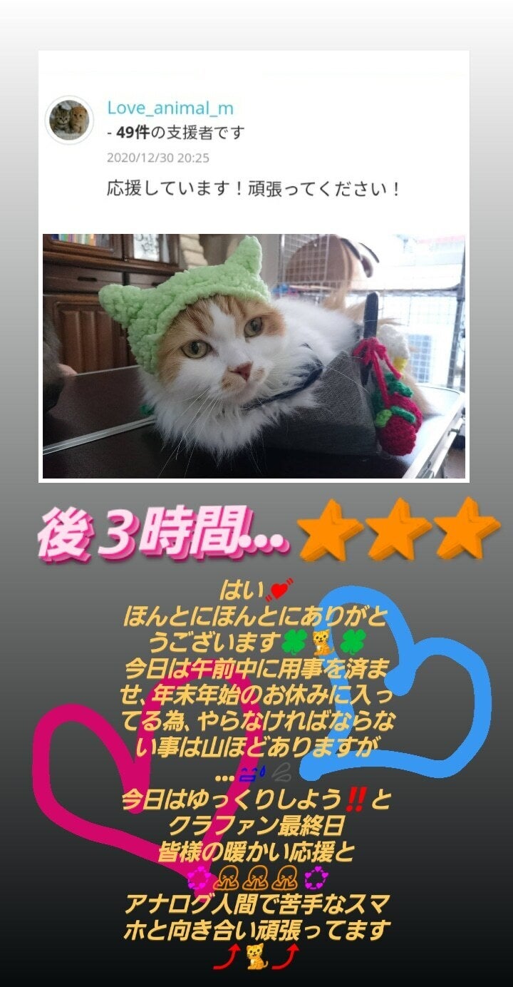 後2時間、皆様の暖かいご支援応援と共に頑張りますにゃ!(=^ェ^=)!