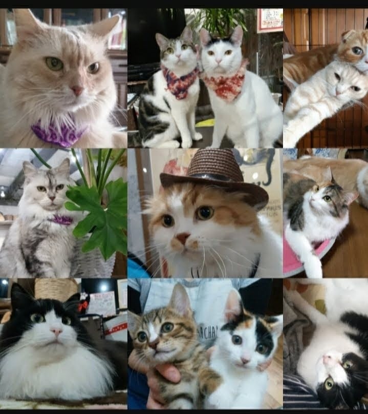 只今、お店には保護猫13匹、預り猫12匹がお客様に笑顔と癒しを提供させていただいております。