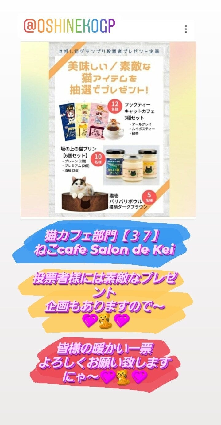 2021/04/19 16:13【日本ねこ協会】【第2回 推し猫グランプリ】【猫カフェ部門】【本投票受付期間】2021年4月10日〜5月9日推し猫グランプリ投票者プレゼント企画もありま~す(*´∇`)ノ (●´∀`●)∩(=^ェ^=)皆様の暖かい清き一票どうぞよろしくお願い致しますにゃ~○(=^ェ^=)○ (●´∀`●)∩https://nekoneko-kyokai.jp/oshinekogp2021/ もっと見る