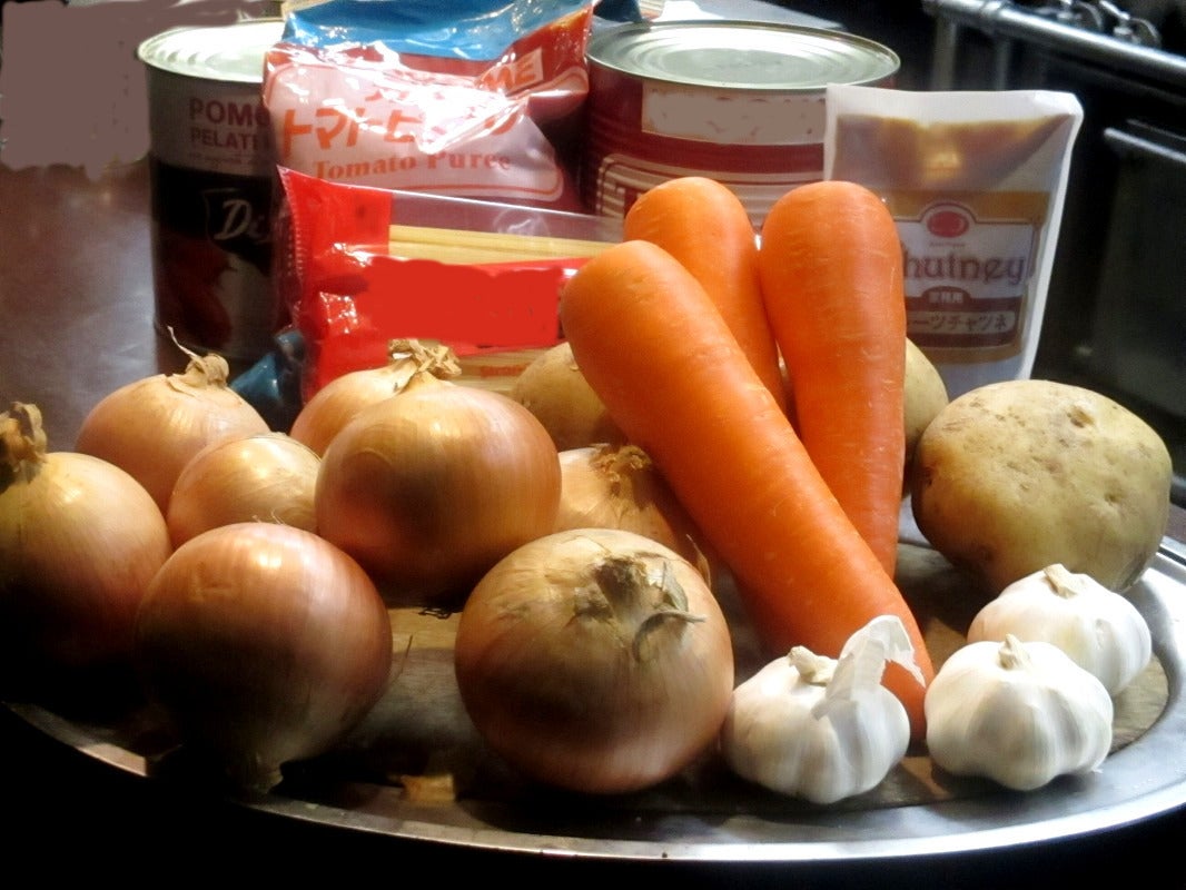 玉ねぎ・人参・セロリ・ニンニク・リンゴを蒸し煮にした野菜ベース。