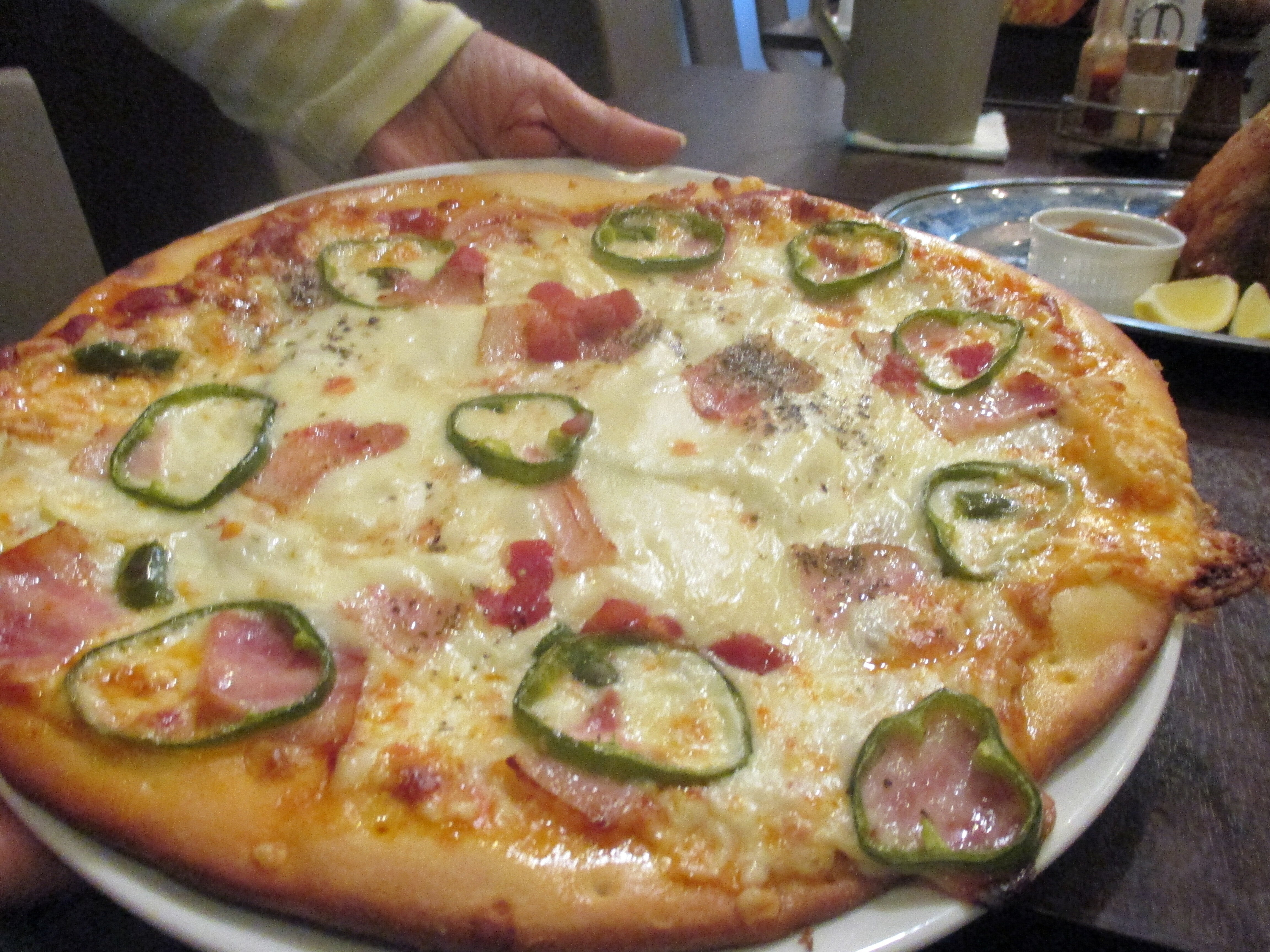 手捏ね生地で伸ばしたチーズたっぷりのピザ