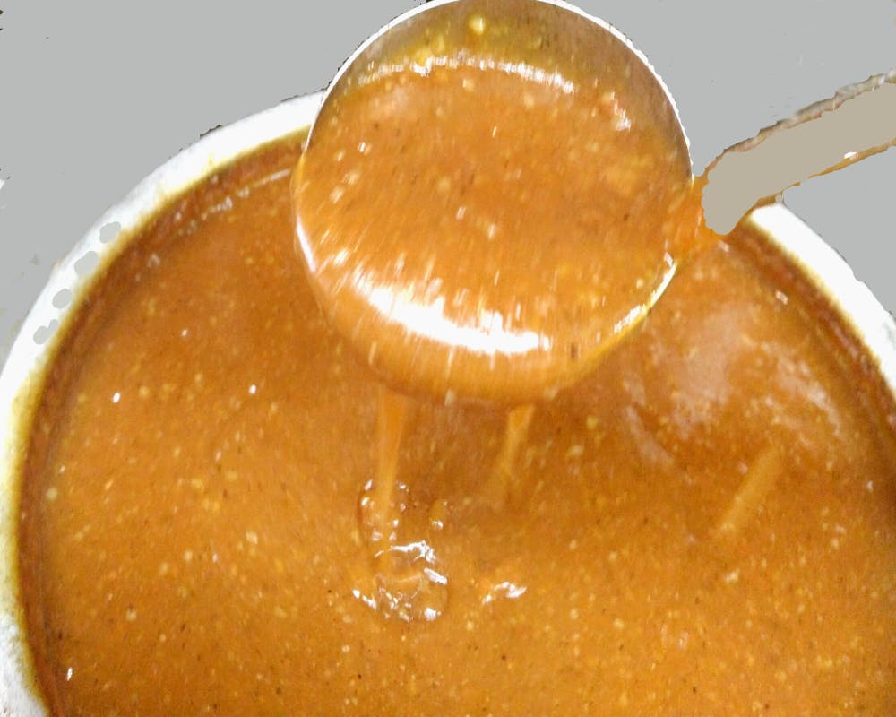 寝かせることによって野菜やトマトの甘味を凝縮させ、あんかけソースの辛みの下支えをすることで食感がこってりなのに後味はマイルドになるように仕上げております。