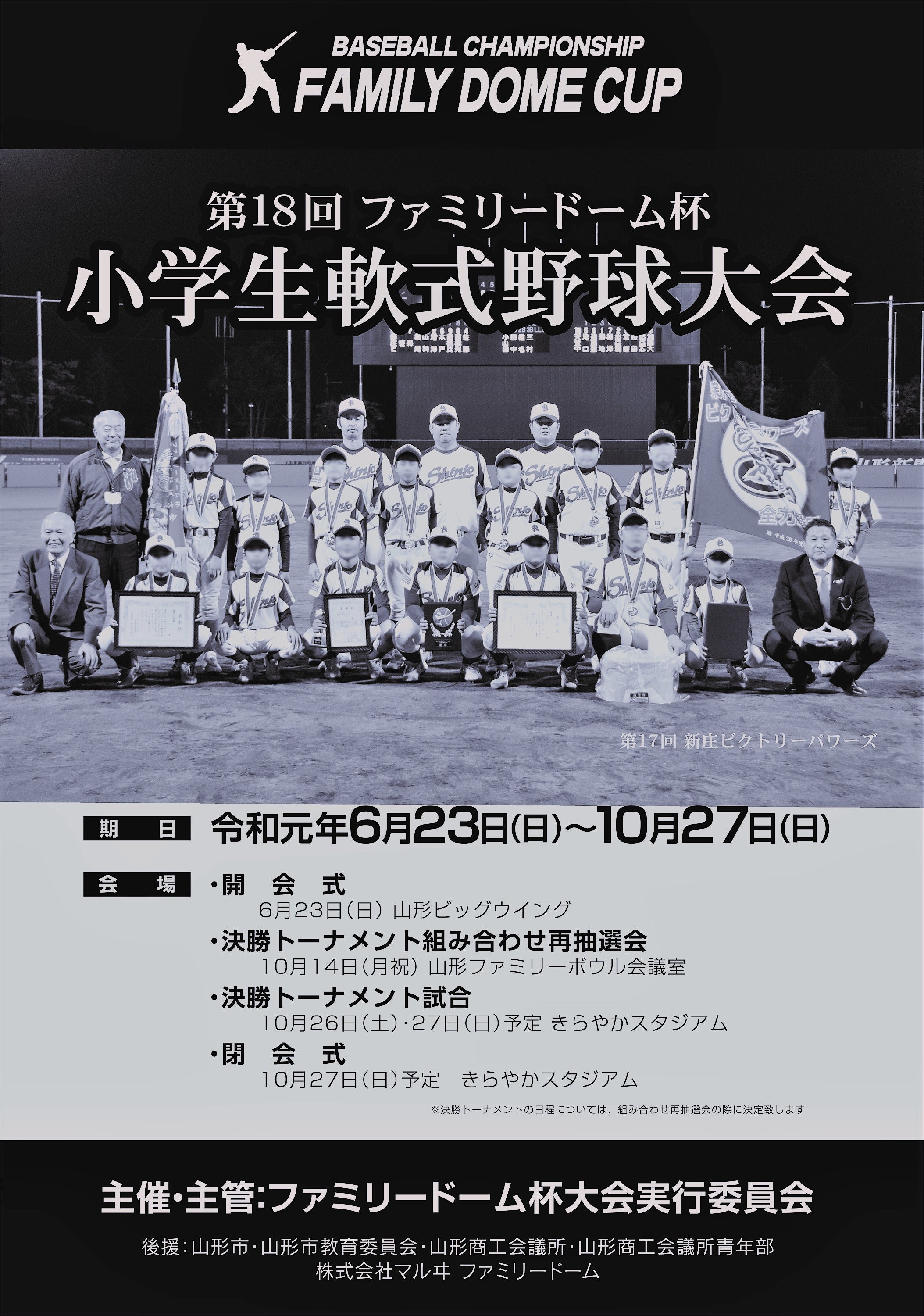 ①山形県内最大規模の軟式少年野球大会「ファミリードーム杯(以下FD杯)」の開催
