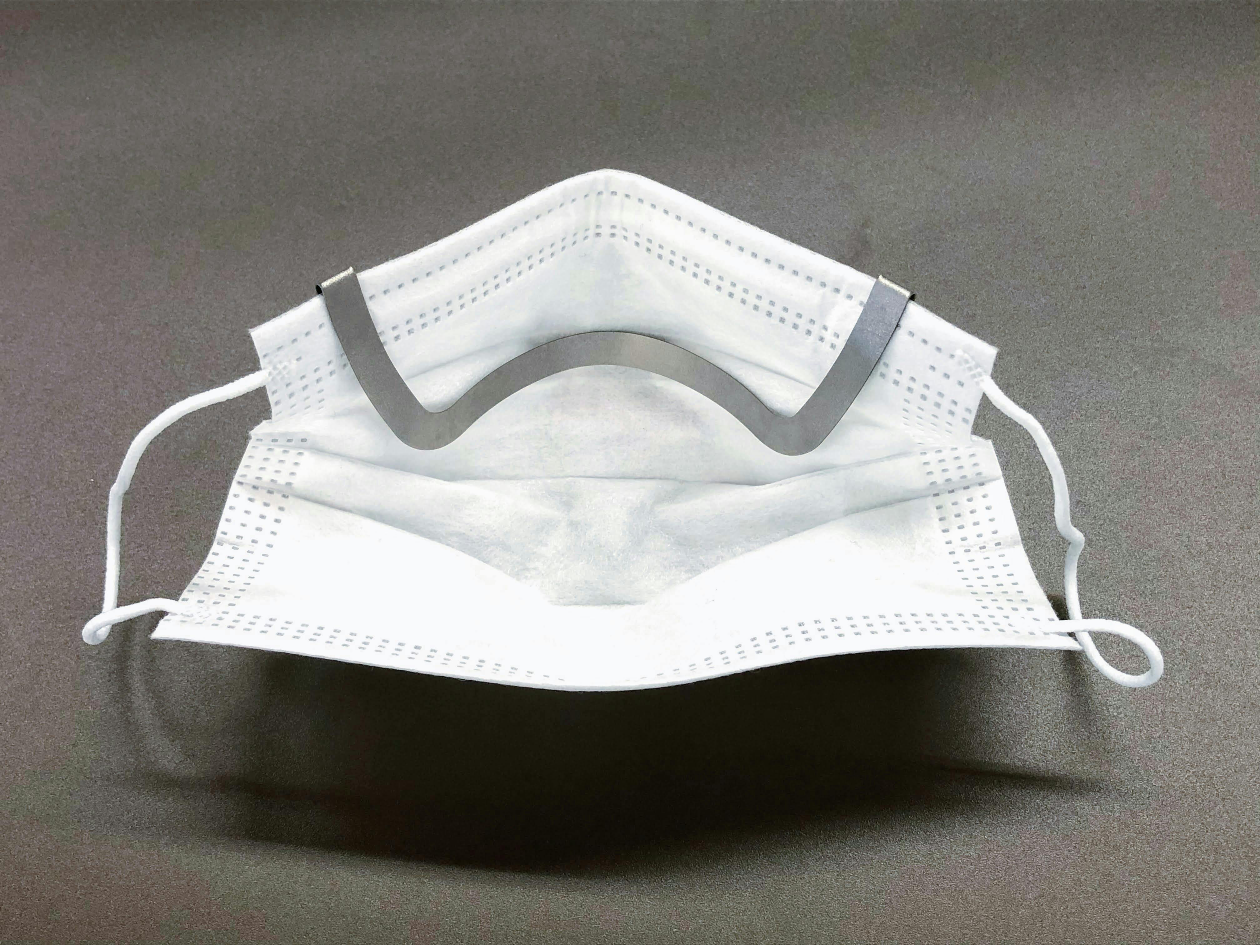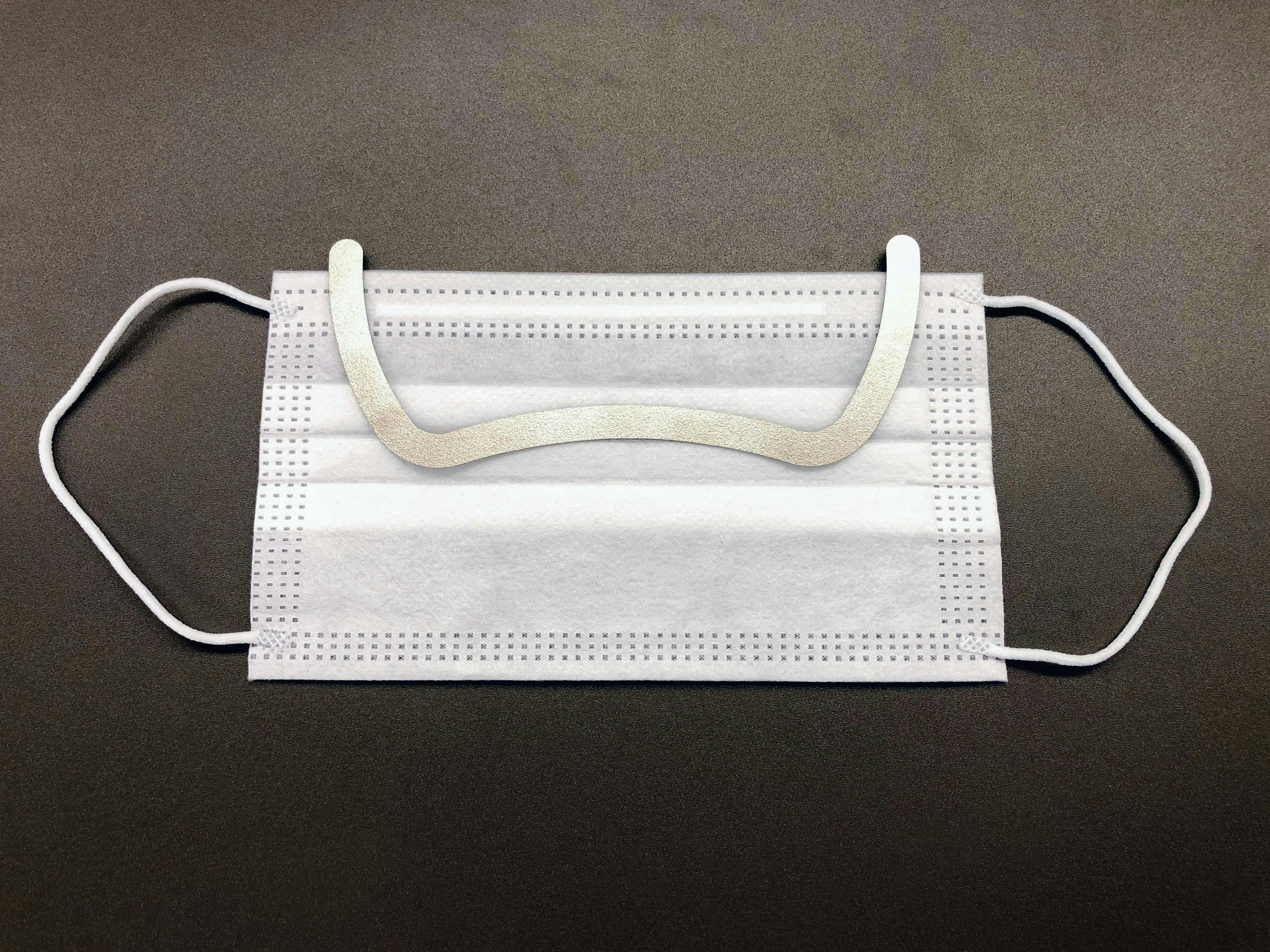 取り付けは一部を曲げて、マスクを挟む形なので手持ちのマスクに合わせられます。