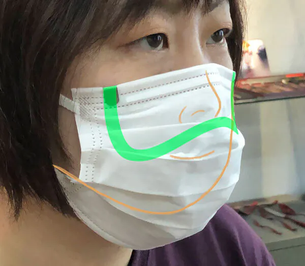 マスクの上部に引っ掛けるように取り付けますが本製品は薄いため