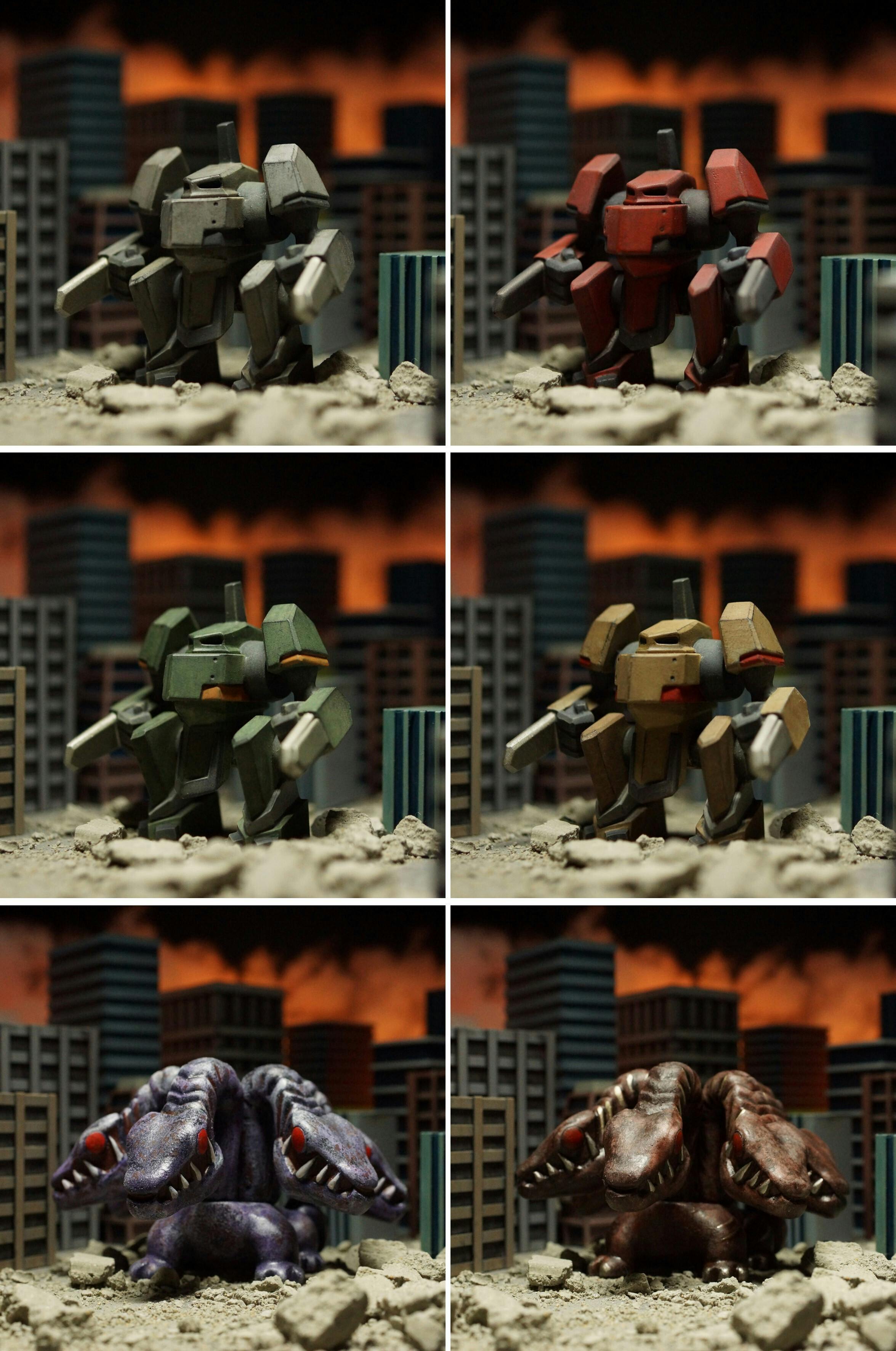 本ゲームの大きな特徴といえるのがロボと怪獣のミニチュアコマです。