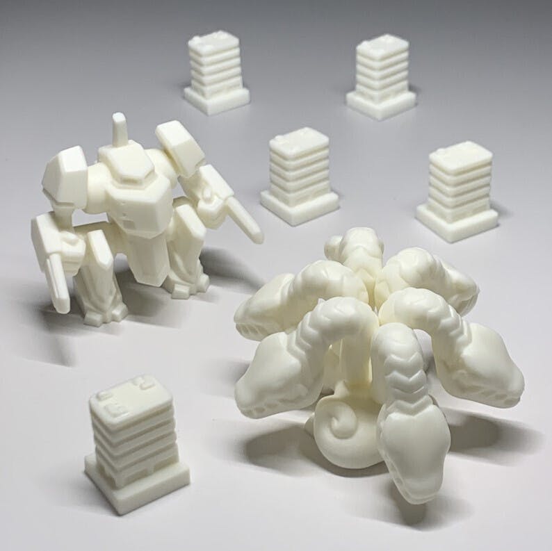 プラモデルやフィギュアを戦わせるごっこ遊びの事を「ブンドド」といいますが、そこにルールを加えてボードゲームとして楽しんでもらえるものが出来ないかと考え、制作を開始しました。