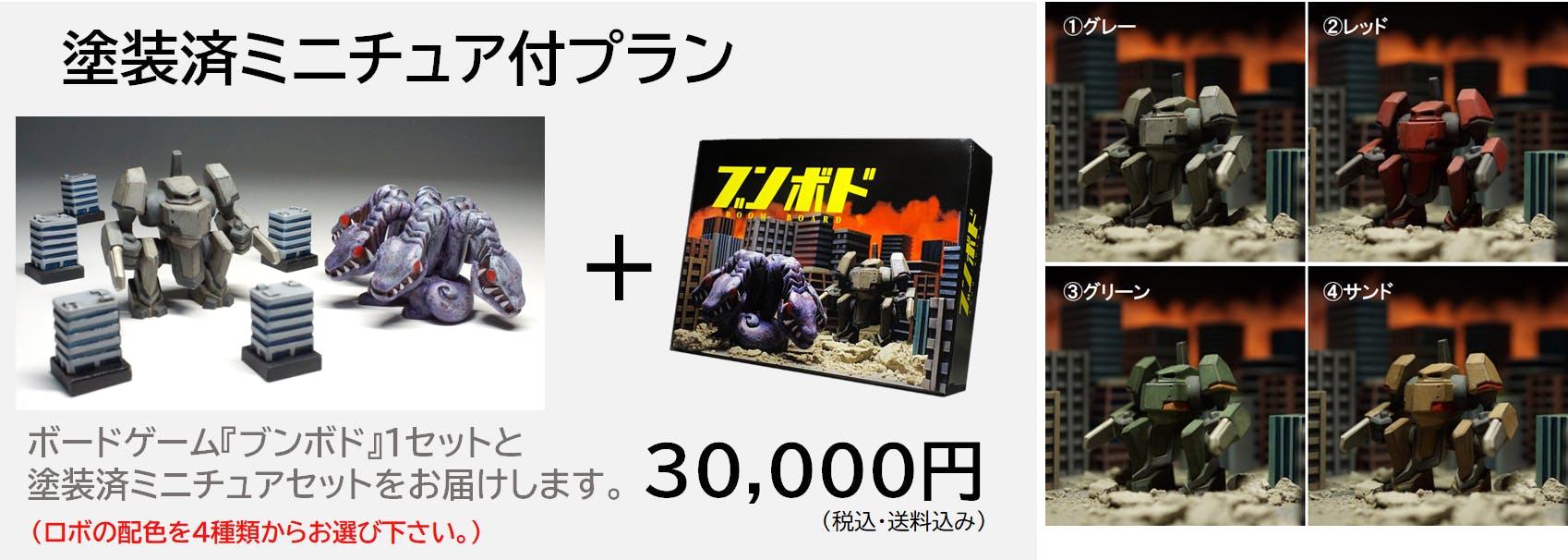 『ブンボド』1セットに加え、塗装済みのミニチュアが付属する豪華プランとなります。