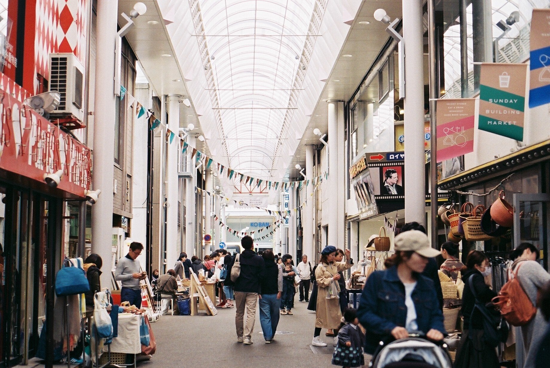 一方、まちの活性化の象徴として現在では毎月第三日曜日に『サンデービルヂングマーケット』と題して、既存商店の方々や周辺の若い人たちがチームとなり、「ここにしかない、ヒト・モノ・空間」をコンセプトにしたマルシェを開催し、商店街に集客機会を増やすとともに、まちのファンを創出する取り組みを行っています。2014年からスタートしたこの取り組みは今日約170店が一同に出店し、約5000人がこの日に来場する一大イベントとなりました。クラフトクリエイターなどがお客様と対面で商品を販売し、コミュニケーションの場にもなっています。