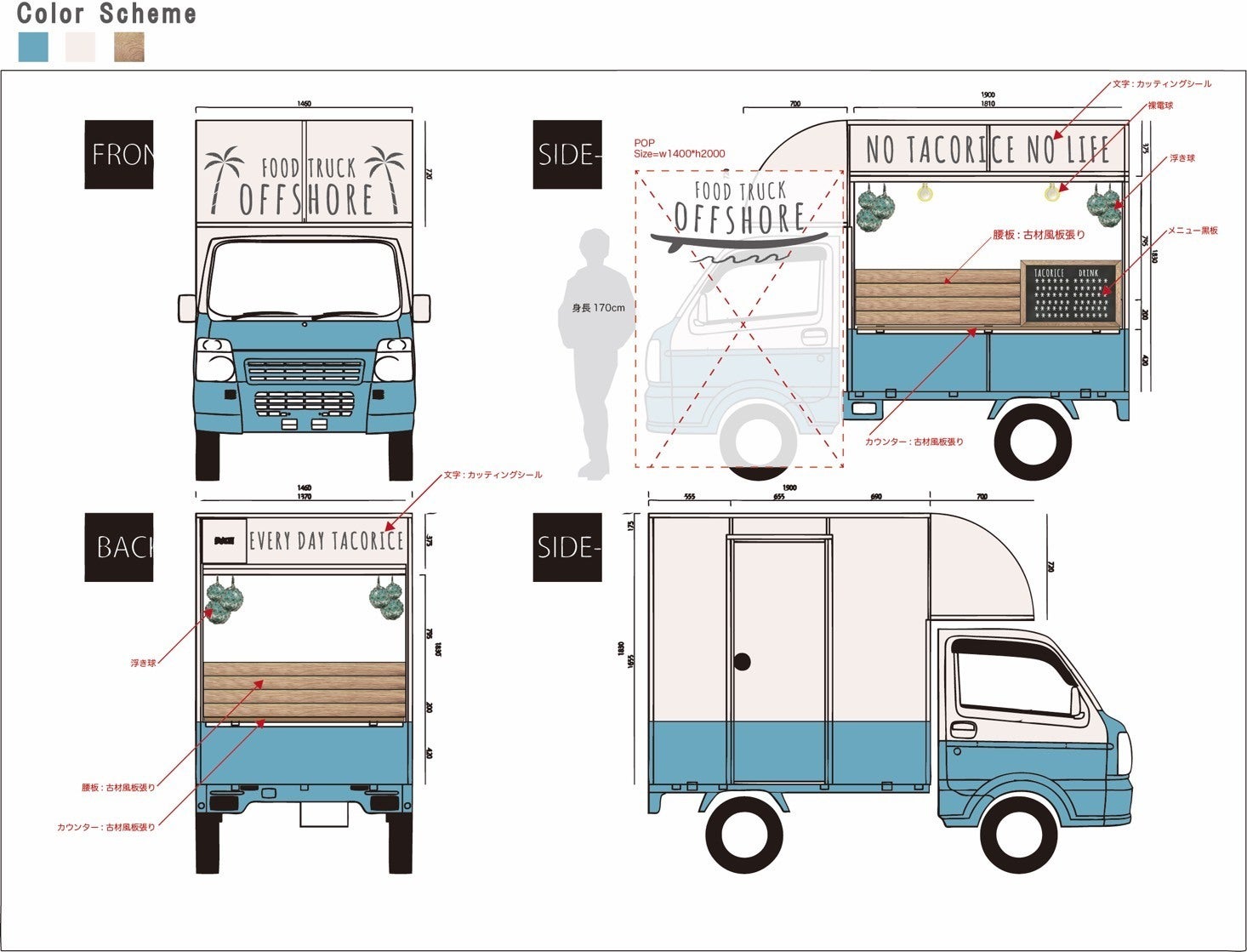 2020/08/10 10:47ついに外装完成!!!8月8日に塗装、9日にカッティングシートと内装整備を行いました!!8日は曇りでも30度を越える暑さの中、後輩くんと共に朝9時半から作業開始!外装ヤスリ作業に2時間半、塗装剥がしに1時間半、マスキングテープ作業に2時間かかり、夕方16時からやっと塗装開始(´Д` )マスキングテープが途中で無くなったり、暗くなって見えなくなったりとハプニングもありましたがなんとか夜中1時に終了!9日は看板・カッティングシート・内装整備を開始!ホームセンターで資材購入に時間かかりましたが、ベニヤ切ったり、カッティングシート貼ったり、みんな汗だくになりながら頑張りました(>_<)ここまでなんとか順調!本当に本当にありがとうございますm(_ _)mオープンまでもう少し!これから保健所申請準備や場所開拓に勤しみます!近日中にまた更新しますのでお楽しみに(^^) もっと見る