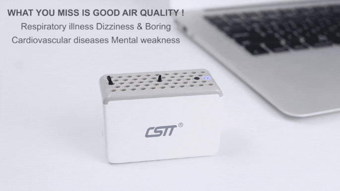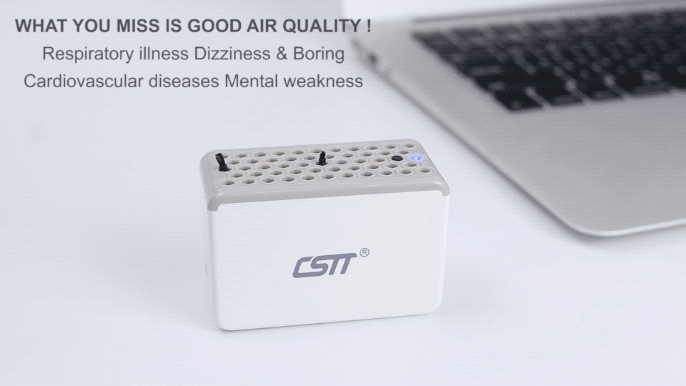 超小型ポータブル空気清浄機「CSTT」は小さくて場所も取らず、線も不要です。