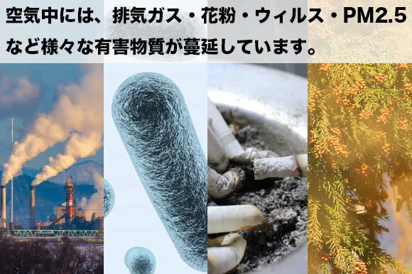 空気中には様々な有害物質が蔓延しています。PM2.5や花粉など、私たちは有害物質の中で暮らしています。