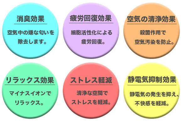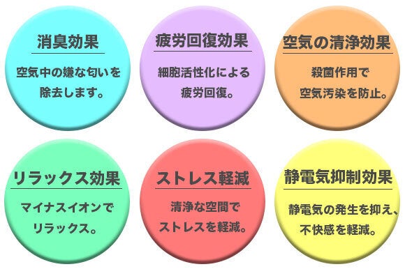 以下はマイナスイオンによる効果です。