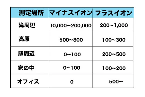 例えば東京都内のごく普通の一般家庭のイオン状態は、プラスイオンがマイナスイオンの100倍以上になります。