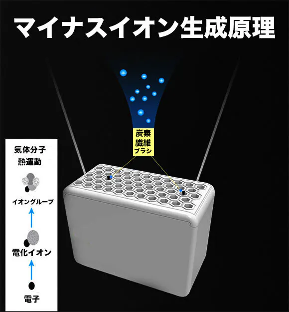 マイナスイオンを発生させ、その性質を利用して空気中の有害物質を吸着・分解させます。