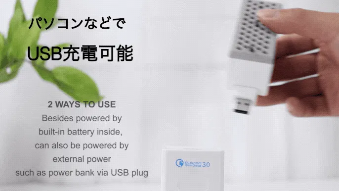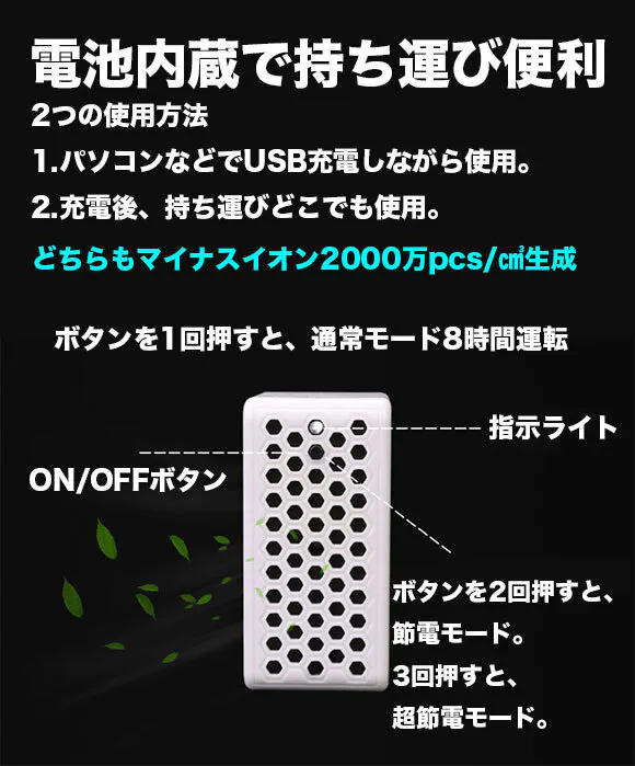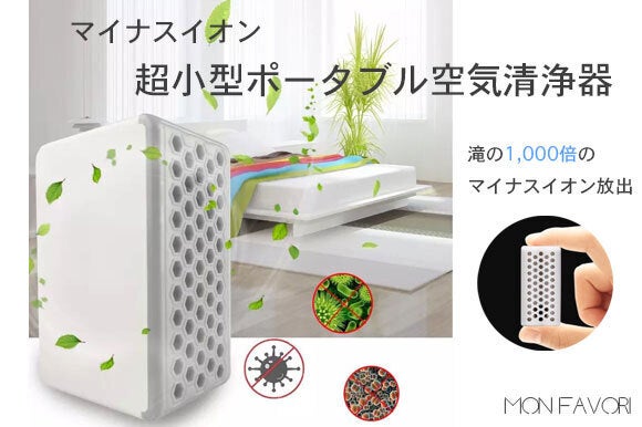 小型USB充電式タイプの空気清浄機を使って、室内でも屋外でも、マイナスイオンが私たちの周りの空気をキレイにしてくれます。