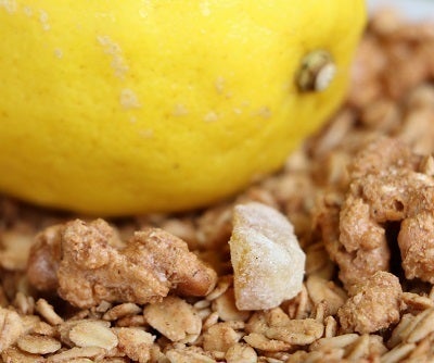 有機オーツ麦を使用し、クルミと一緒にきび糖で仕上げたグラノーラに伊豆レモンピールが入ります。