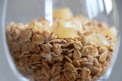 有機オーツ麦を使用し、クルミと一緒にきび糖で仕上げたグラノーラにニューサマーオレンジピールが入ります。