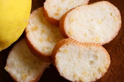 フランスパンに手塗で伊豆レモンピールを塗り込みました。爽やかな伊豆レモンの香りをお楽しみください。