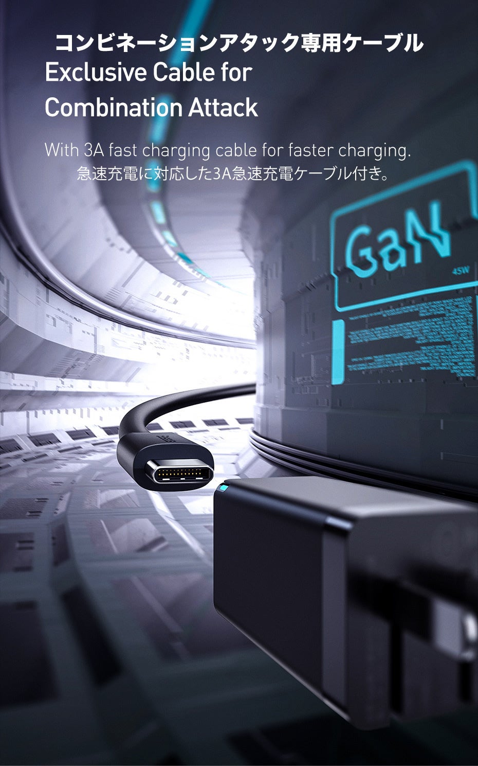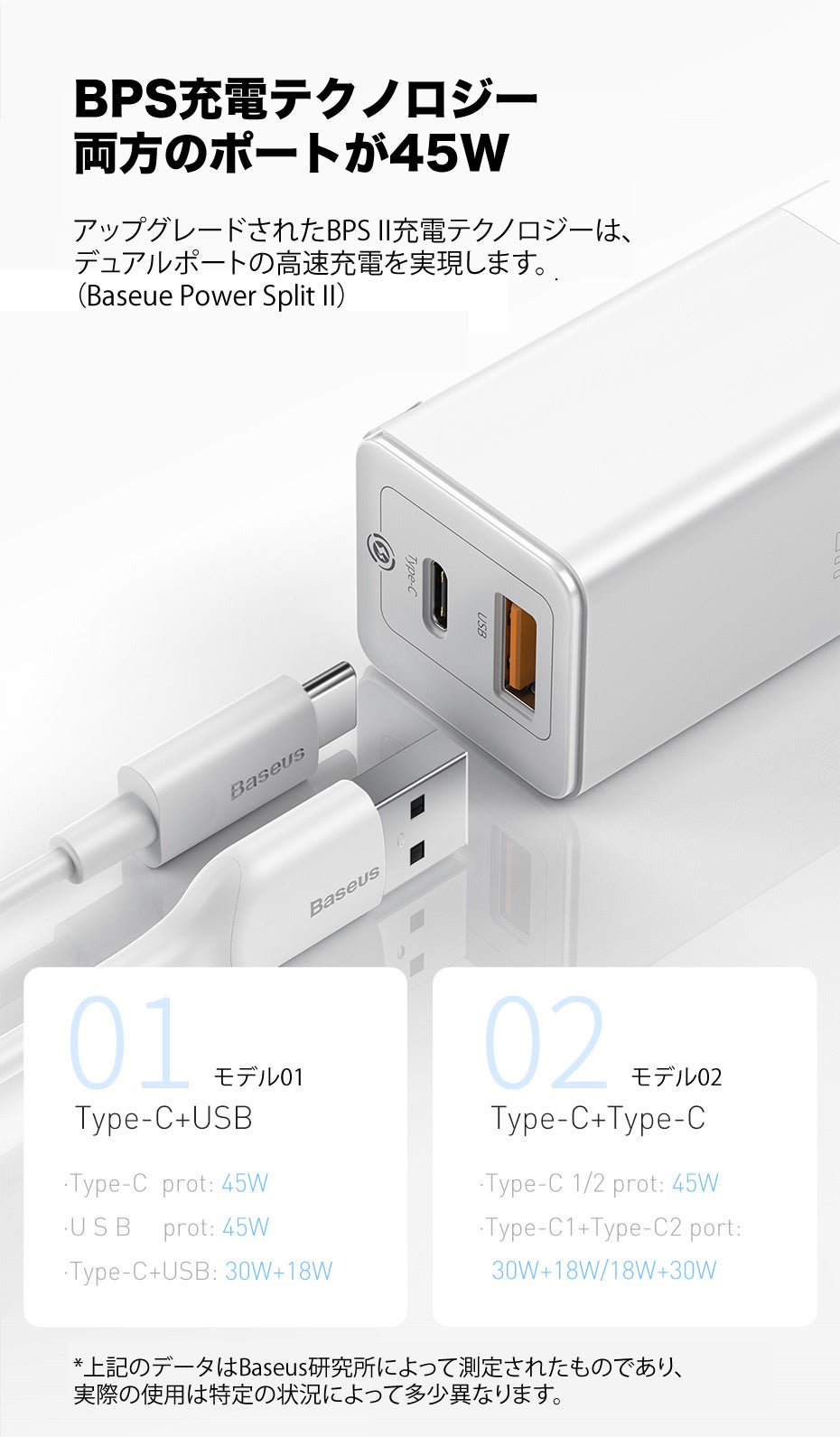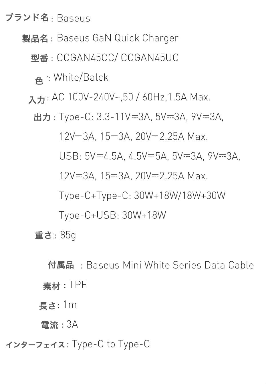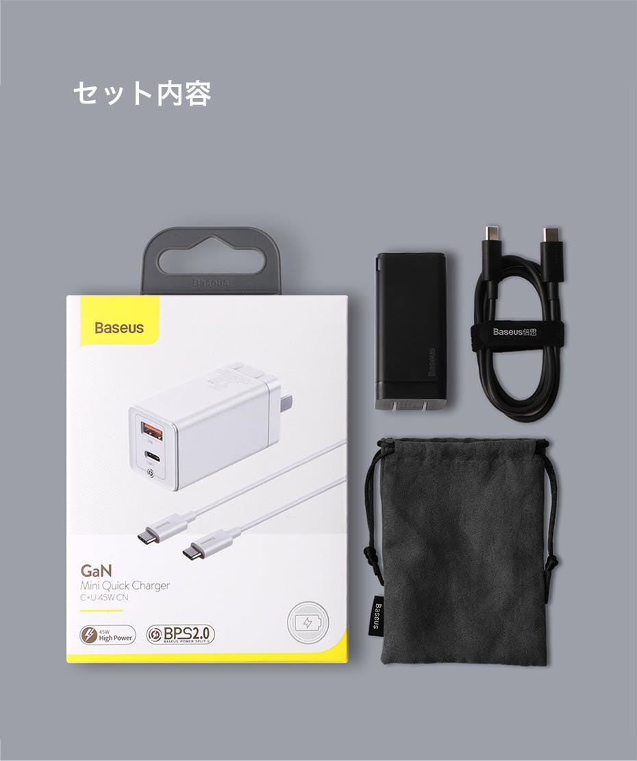 PD急速充電をサポートして45W大出力で短時間で充電が可能です。