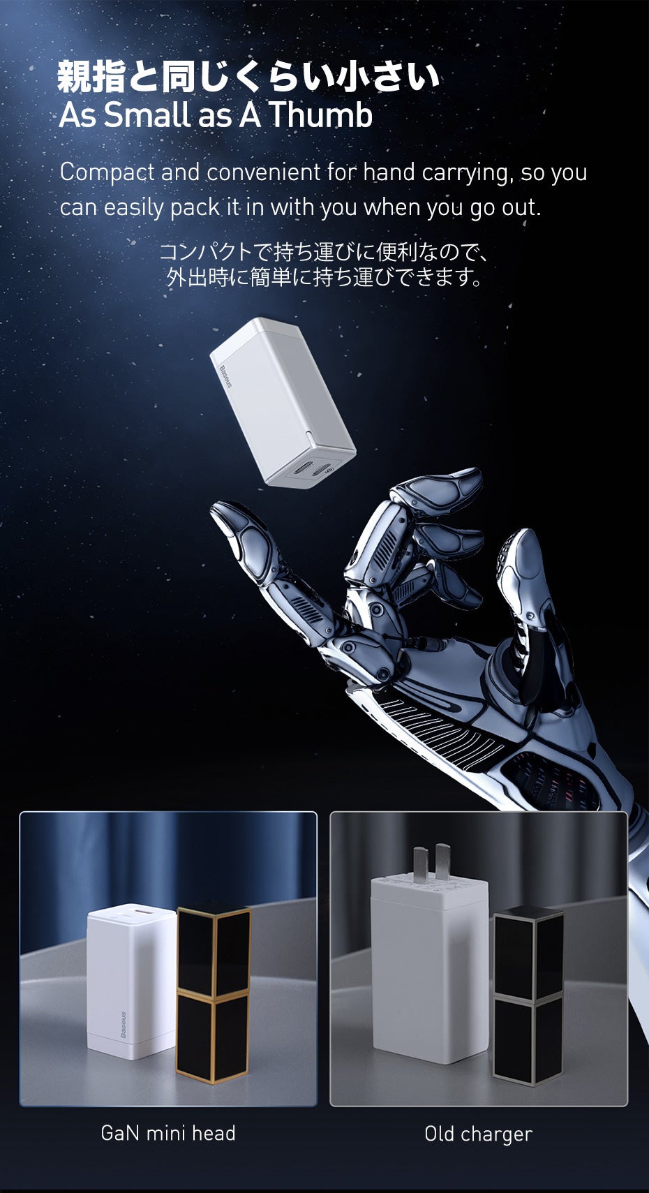 本製品は手のひらに持つことができる精巧な体積に45 Wの強力なパワーを凝縮し、古いタイプの45 Wの充電器より体積を30%縮小しました。