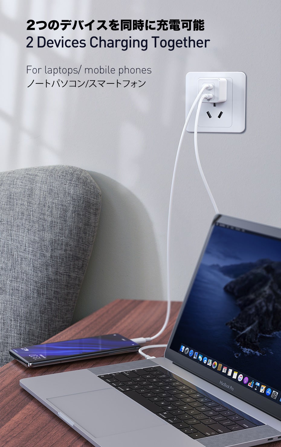 A: 最大で2つの端末を同時に充電なため多くの端末で利用が出来ます。