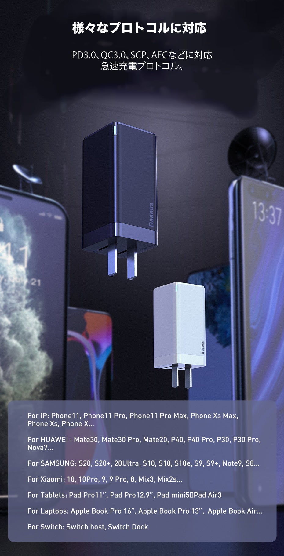 ほとんどのデバイスに最高速度の充電を提供します。