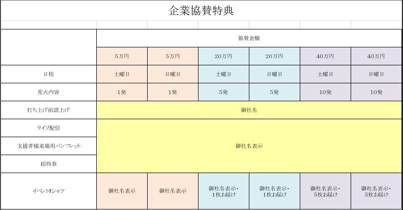 野外開催につき、打ち上げ時間、内容は支援金額によって調整させていただきます。あらかじめご了承ください。