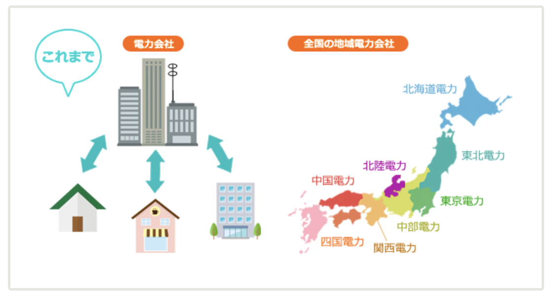 新電力とは、従来からある大手電力会社(関西電力や東京電力などの地域電力)を除く電力会社のことです。新電力=新電力会社と考えていただくとわかりやすいかと思います。これまで私たちは、電気を使うために電力会社(地域電力)と契約していますが、 地域の電力会社が電気事業の地域独占を許されてきました。 消費者は地域電力会社と契約するしか選択肢がありませんでした。