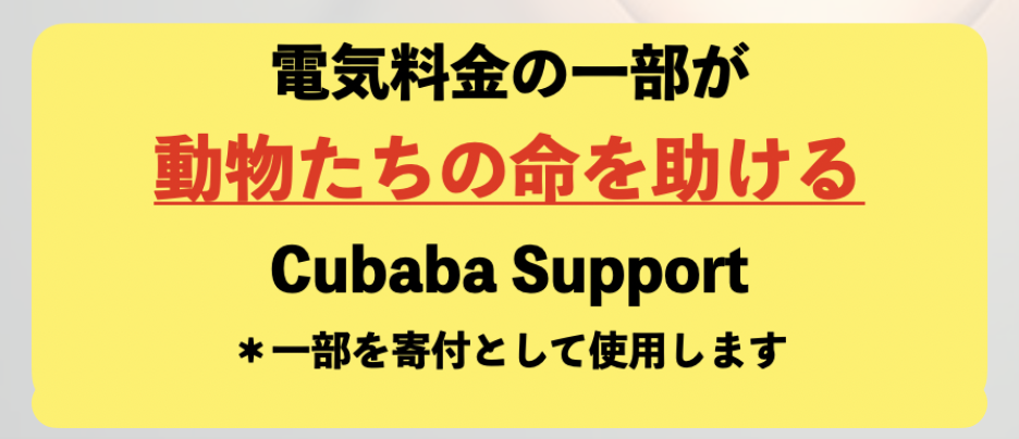 ➡️Cubaba Energyでは、他にはあまりない付加価値として電気料金の一部が『動物の保護活動されている方々の支援・寄付』になるプランをご用意しております!!