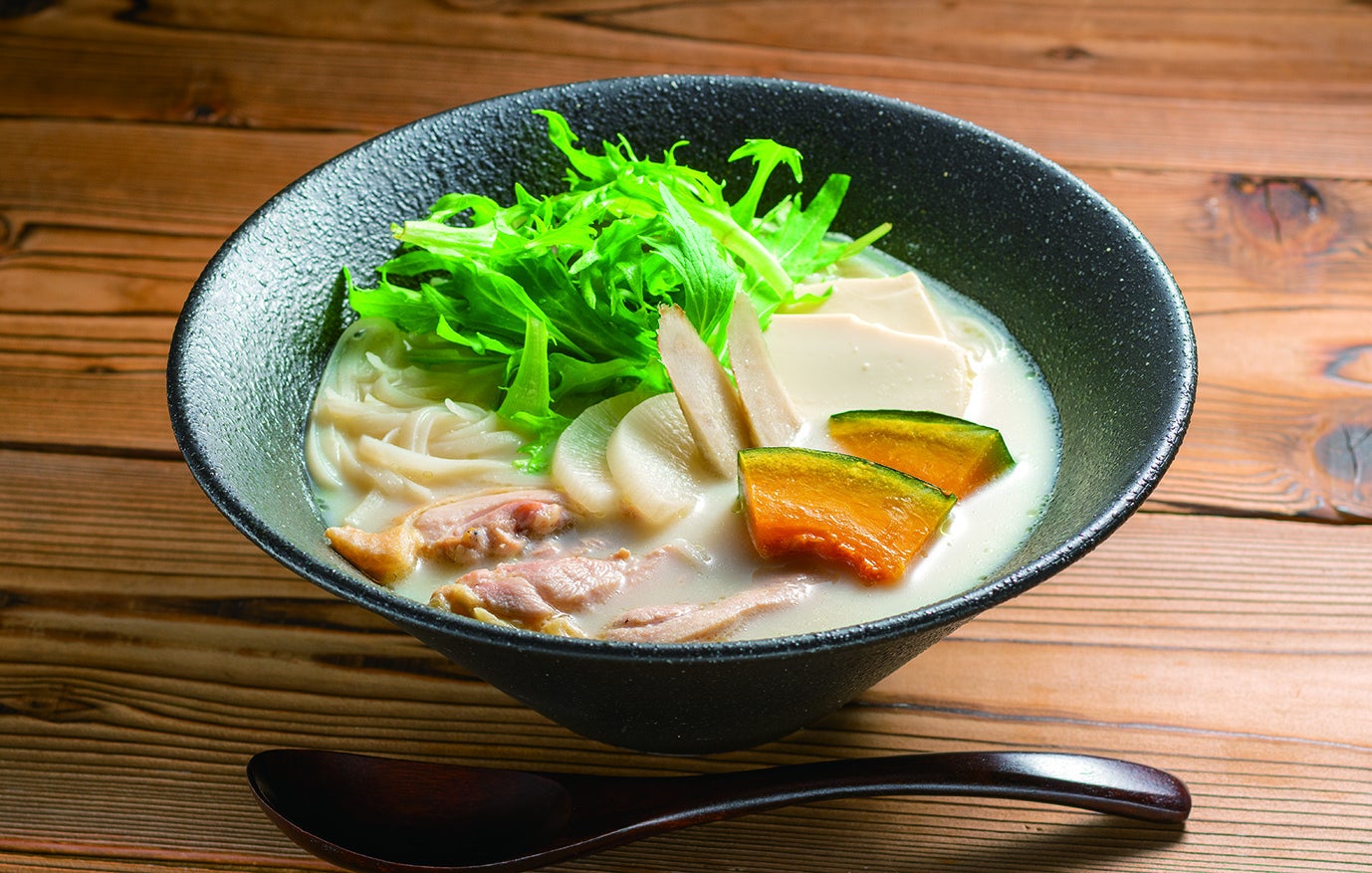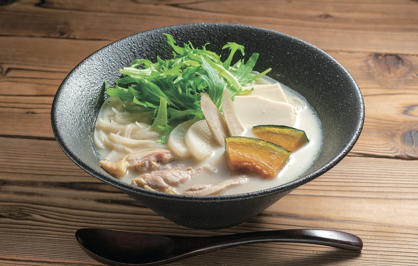 野菜のブイヨン+和だし+豆乳のスープと米粉で作られたフォー麺でコクがあるのにあっさりした味わい