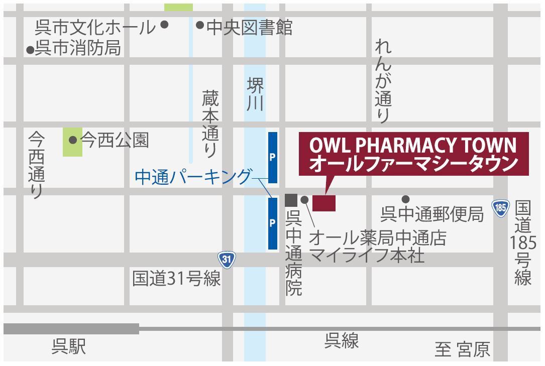 所在地 広島県呉市中通1丁目3-14オールファーマシータウン2F
