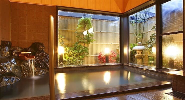 当館は日本海側最大級の野天風呂で自家源泉からの高温泉、豊富な湯量をお楽しみいただけます。
