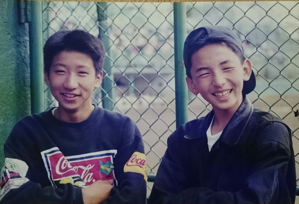 (写真右が小6の私。友人と藤崎台で高校野球観戦)