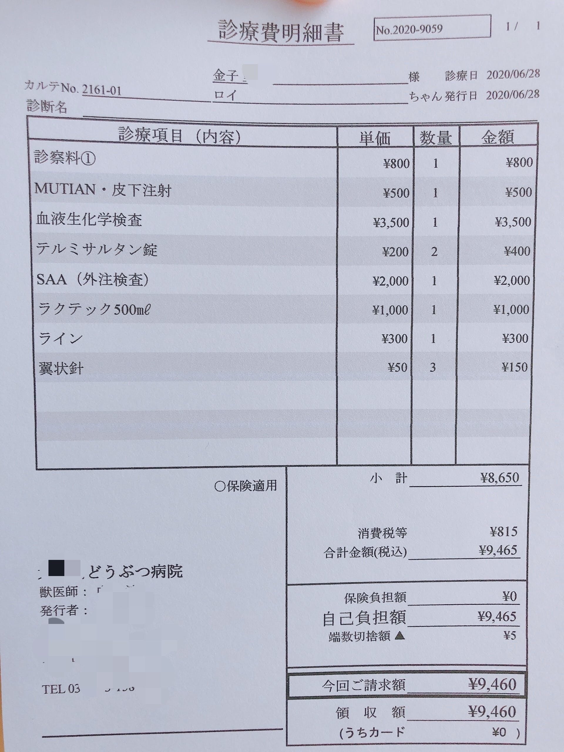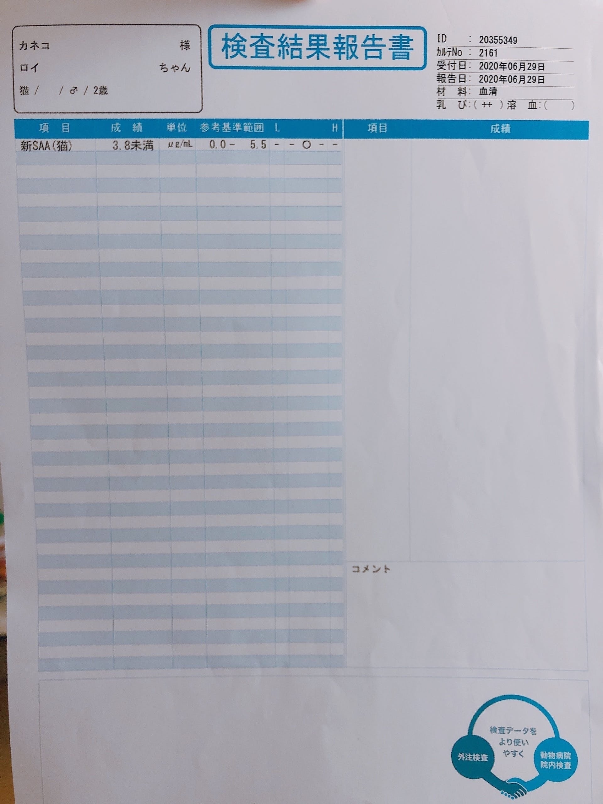 こちらは6/28に受けたSAA(炎症値)検査の結果です。