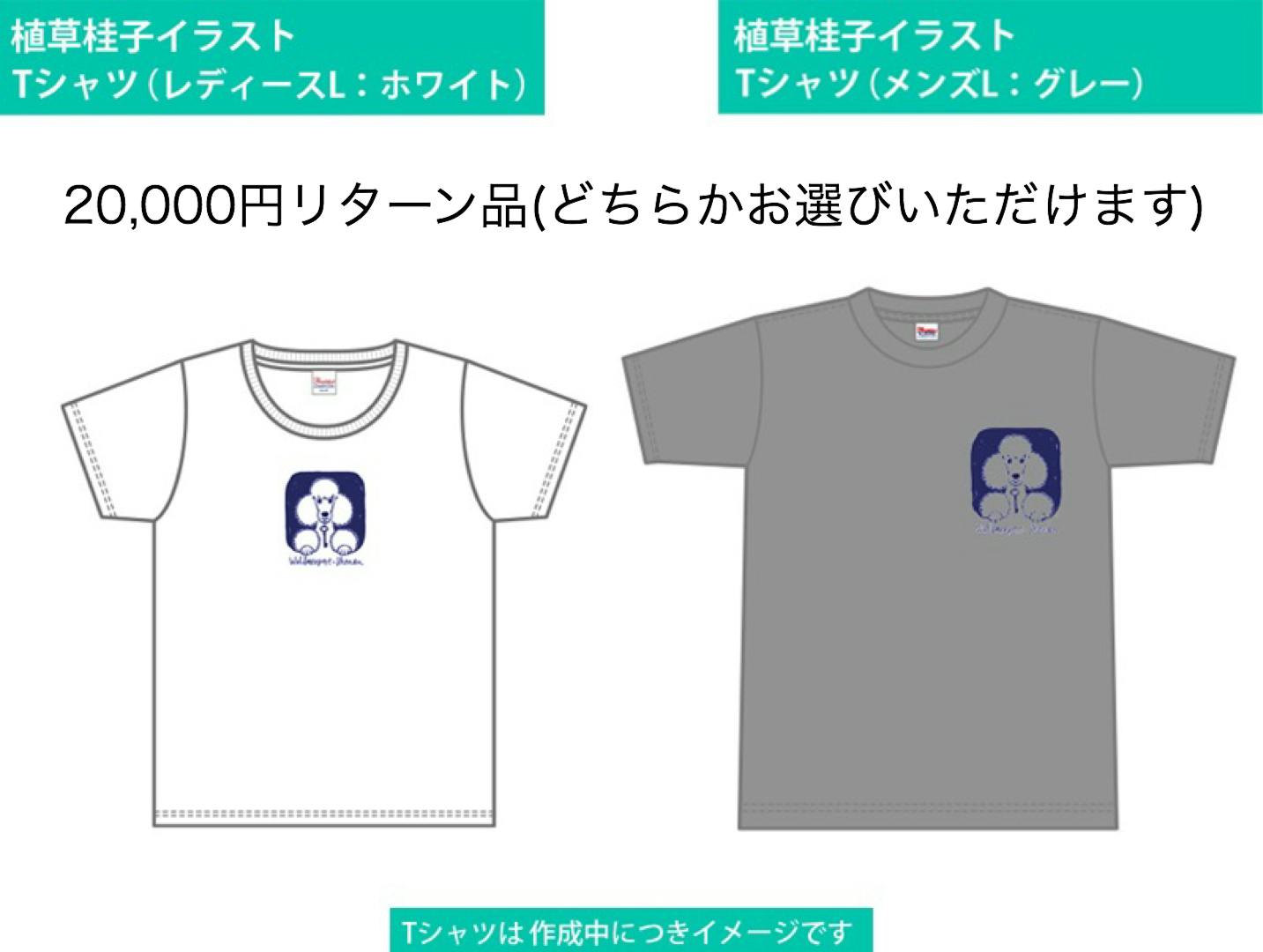ご支援20,000円のリターンにTシャツをご用意。メンズはグレー、レディースはホワイト。どなたにも着ていただけるように男女ともLサイズにしました。レディースは襟ぐりに少しゆとりがあり、首元が垢抜けて見える絶妙なシルエットです!