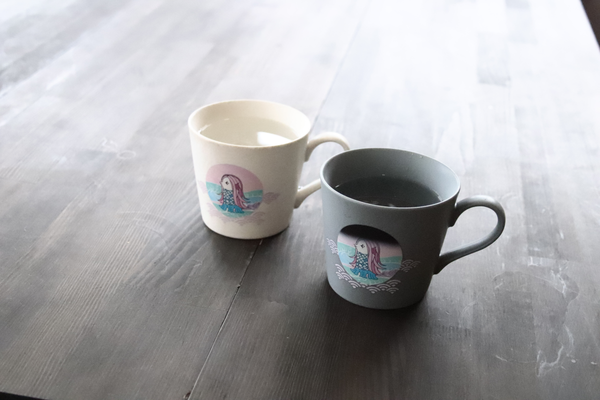◆温度で変化するアマビエマグカップ(白・グレー)+専用化粧箱付