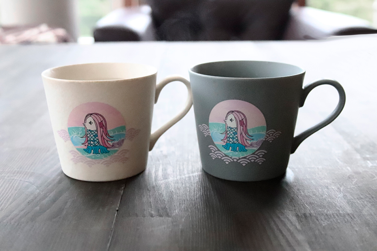 ◆温度で変化するアマビエマグカップ(灰うのふ・アメ)+専用化粧箱付